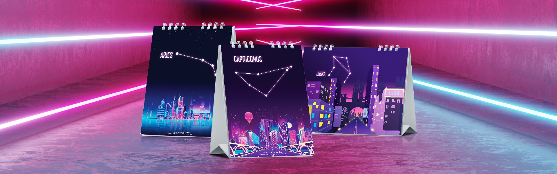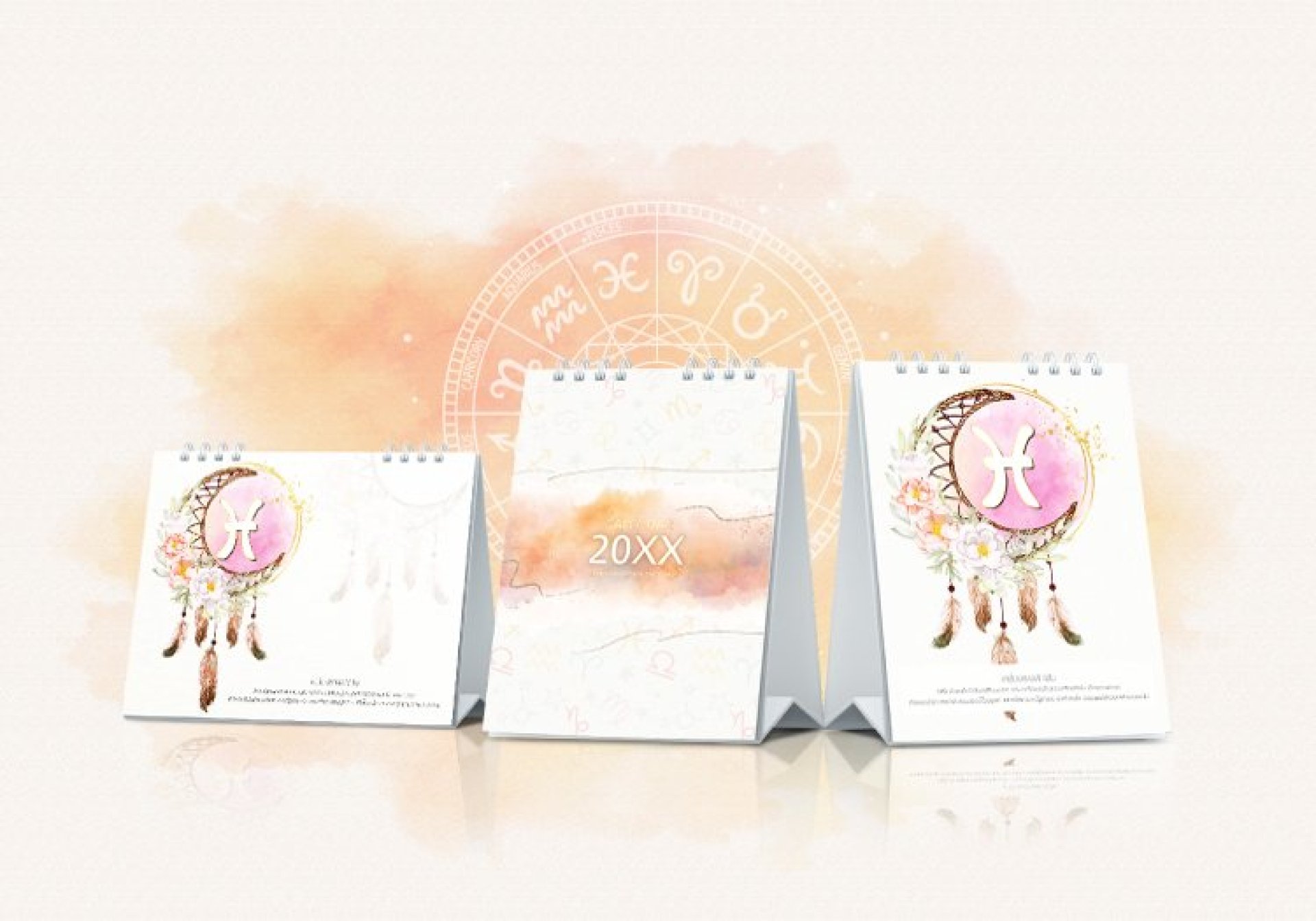 ปฏิทินตั้งโต๊ะสำเร็จรูปที่นำเอาความหมายของกลุ่มดวงดาวต่างบนท้องฟ้าจักรวาล