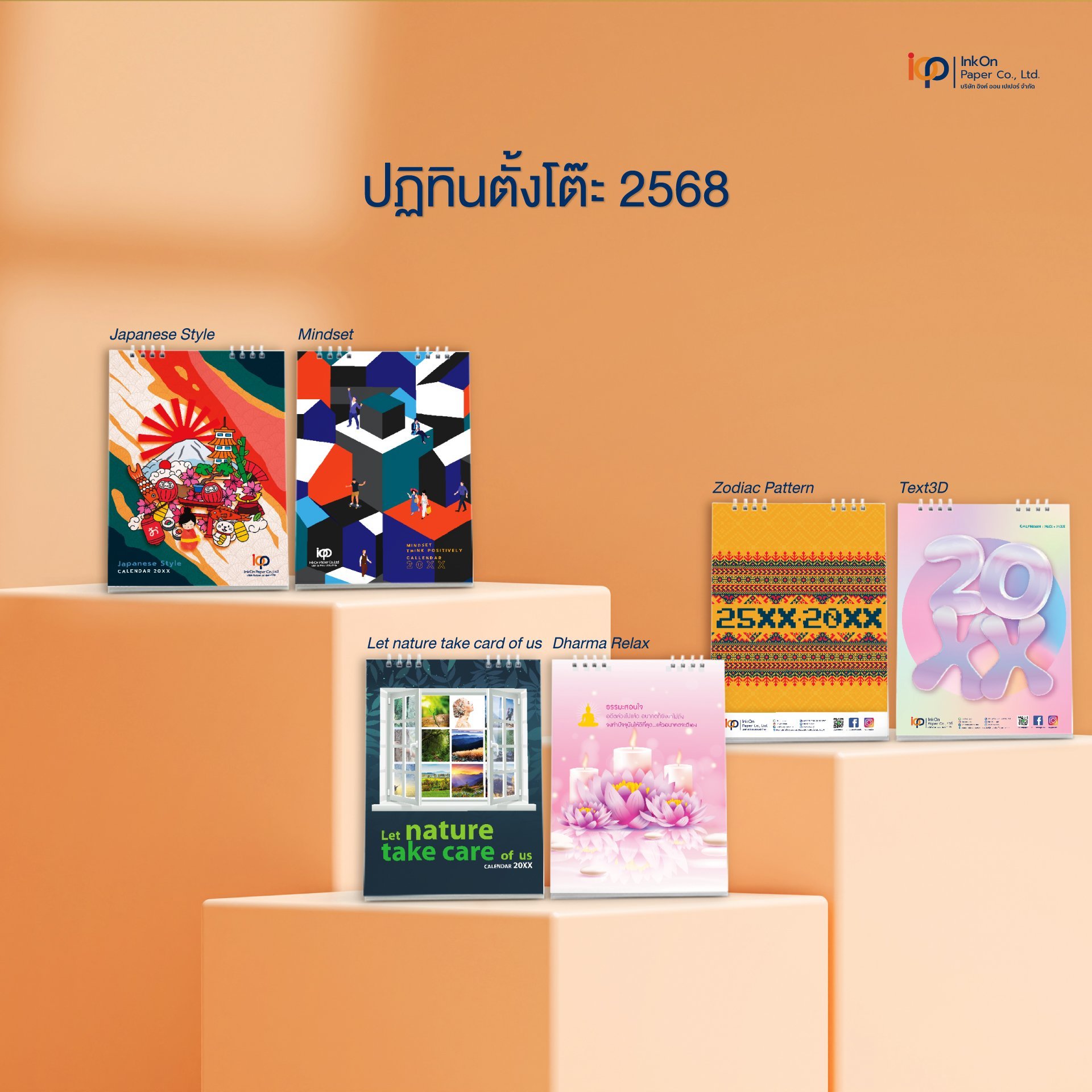 อิงค์ ออน เปเปอร์ ขอแนะนำปฏิทินตั้งโต๊ะธีมใหม่ "Let Nature Take Care of us" ธรรมชาติบำบัด เป็นธีมที่ว่าด้วยการใช้พลังงานจากธรรมชาติและสิ่งแวดล้อมรอบตัวเราช่วยฟื้นฟูร่างกายและจิตใจให้สุขสงบ สามารถฮีลใจ ทำให้รู้สึกผ่อนคลายและหายเหน็ดเหนื่อย อ่อนล้าจากการทำงาน และการใช้ชีวิตประจำวัน ผ่านการทำกิจกรรมต่างๆ อาทิ การท่องเที่ยวในทริปสั้นๆ หรือแม้แต่การเลือกรับประทานอาหารที่มีประโยชน์ นอนพักผ่อนอย่างเพียงพอ เพียงเท่านี้คุณก็จะรู้สึกสดชื่น และผ่อนคลายได้ง่ายๆ ลองนำมาปรับใช้ในชีวิตประจำวัน รับรองว่าคุณจะต้องหลงรักธรรมชาติรอบตัวคุณเพิ่มขึ้นอย่างแน่นอน