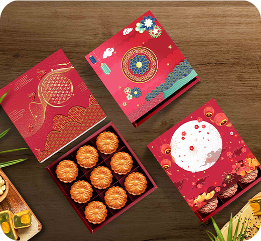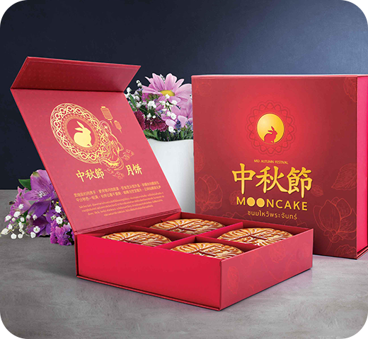 Ink on paper รับผลิตกล่องขนมไหว้พระจันทร์ดีไซน์พรีเมี่ยม หรูหรา สะดุดตา ด้วยดีไซน์การออกแบบที่ทันสมัย พร้อมบริการจัดวางโลโก้สินค้าให้ฟรีบนกล่อง สร้างการจดจำให้กับแบรนด์ของคุณ
